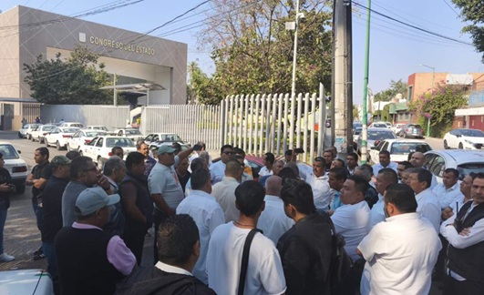 Taxistas protestan en el Congreso de Morelos, exigiendo subsidios