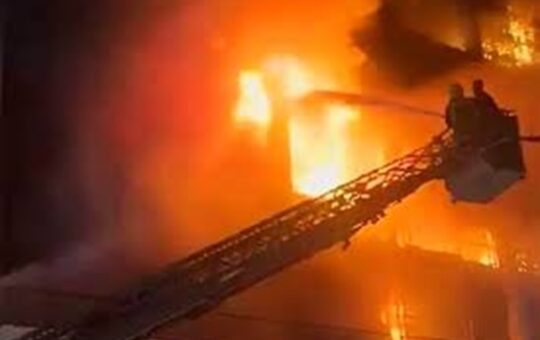 Bagdad, Irak, Asia.- Un incendio se extendió por un centro comercial recién inaugurado en el…