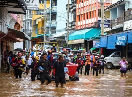 Islamabad, Pakistán, Asia .- Rescatistas en botes se apresuraban el jueves para llegar a las…