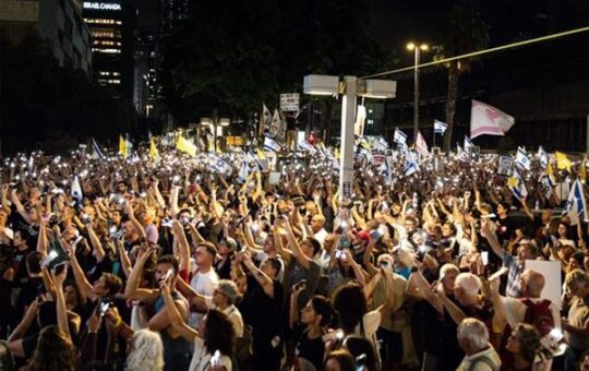 Jerusalén, Israel, Asia.- Al menos 350 mil manifestantes israelíes protestaron este martes en la Plaza…