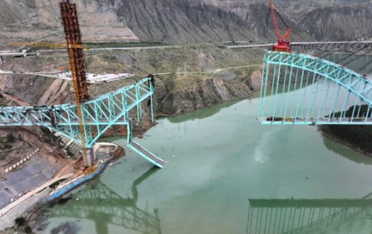 Beijing, China, Asia.- El colapso de un puente ferroviario en construcción sobre un importante río…