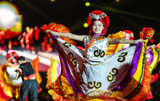 Beijing, China, Asia.- Artistas realizando una presentación en la celebración del Festival de la Antorcha…