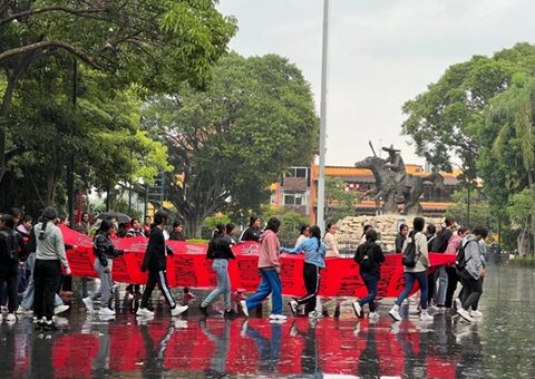 Cuernavaca, Morelos, México, América.- Alumnas de la escuela normal rural “Emiliano Zapata” ubicada en Amilcingo,…