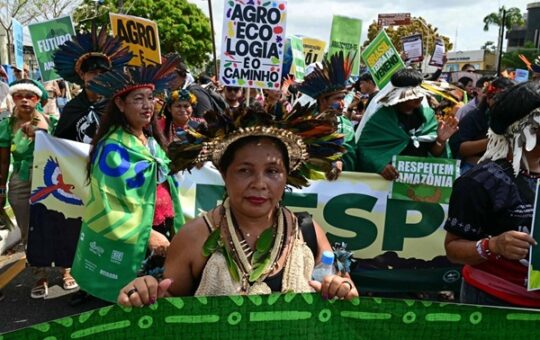 Brasilia, Brasil, Ámérica.- Miles de manifestantes, entre ellos numerosos indígenas, marcharon el sábado en Belém…