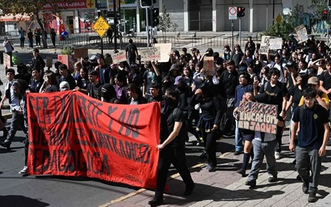 Santiago, Chile, América.- Santiago. Miles de estudiantes chilenos protestaron este jueves en Santiago contra el…