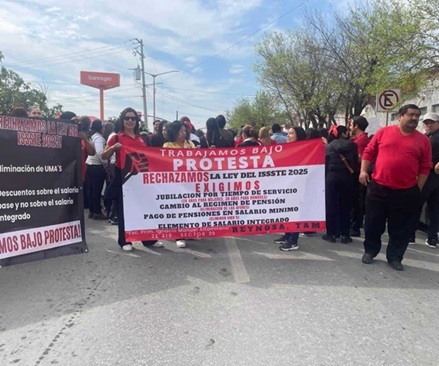 Ciudad Reynosa, Tamaulipas, México, América.- El magisterio de Reynosa se manifestó en contra de la reforma a la Ley de Pensiones del ISSSTE 2025, una medida impulsada por el Gobierno federal y avalada por el Legislativo que, según los docentes, vulnera gravemente sus derechos laborales. Los maestros exigen una jubilación digna y un sistema que considere el tiempo de servicio, en lugar de la edad para determinar la pensión.