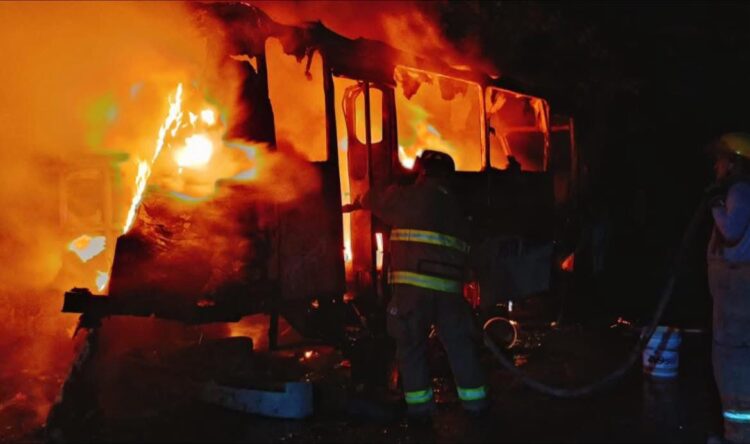 Se quema microbús en el Fraccionamiento “Luis Quintero”