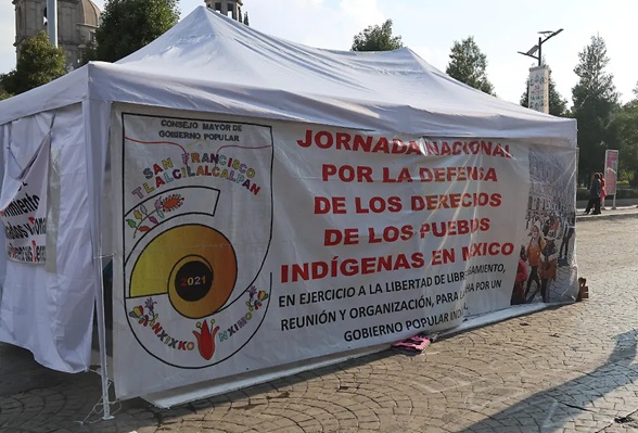 Toluca, Estado de México, México, América.- Comuneros de San Francisco Tlalcilalcalpan denunciaron que han recibido amenazas de desalojo por parte de las autoridades estatales, debido al plantón que mantienen desde el pasado jueves frente al Palacio de Gobierno del Estado de México.