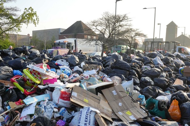 Londres, Gran Bretaña, Reino Unido, Europa.- Un hedor se eleva sobre la segunda ciudad más grande del Reino Unido. Debido a una disputa entre la ciudad y sus recolectores de basura; los residuos se han acumulado durante un mes en Birmingham. Es desagradable a la vista y repugnante para el olfato. Se comenta que las montañas de basura son visibles desde el espacio y la gente se ha quejado de ver ratas tan grandes como gatos entre la basura.