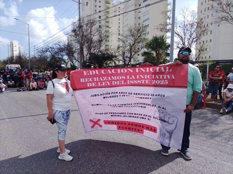 Maestros protestan en Quintana Roo, exigiendo audiencia con la Gobernadora