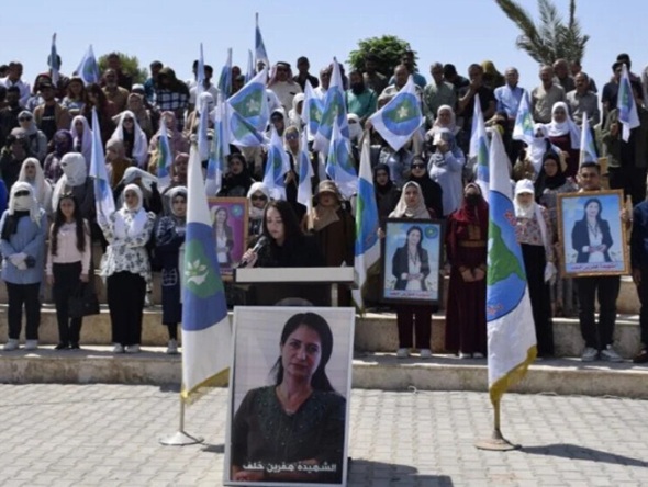 En Kobanê, miembros del Partido Futuro de Siria y organizaciones de mujeres se unieron para denunciar una vez más el asesinato de Khalaf, manifestaron su rechazo al nombramiento y se comprometieron a luchar por la rendición de cuentas.