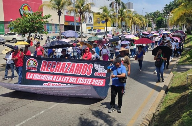 Primeramente, los docentes marcharon por la avenida Costera Miguel Alemán, en la zona Dorada de Acapulco, desde poco después de las 10 horas de este jueves.