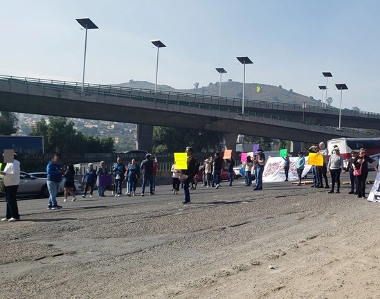 Cuautitlán Izcalli, Zona Metropolitana CDMX, México, América.- Vecinos de la colonia Hacienda del Parque bloquearon, entre 9 y 10 de la mañana, carriles laterales de la autopista México-Querétaro, con dirección a la Ciudad de México, en rechazo a la construcción de un Centro de Distribución (Cedis) de Mercado Libre.