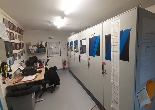 La producción de energía se logra mediante el funcionamiento de tres grupos electrógenos principales, cada uno de los cuales suministra la energía eléctrica necesaria para el funcionamiento de la base.