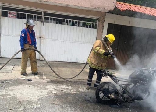 Fuego consume motocicleta en el Fraccionamiento Valle de Aguayo