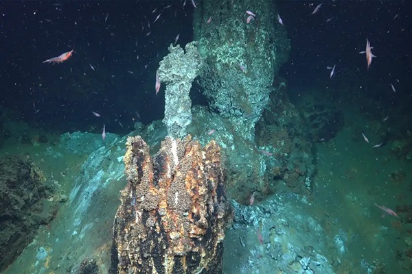 Cada respiradero estaba cubierto de organismos como caracoles marinos y percebes, que dependen de la quimiosíntesis para sobrevivir.