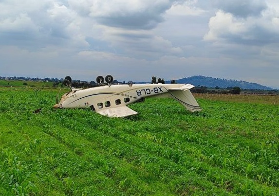 La avioneta aterrizó y se volcó en terrenos de cultivo, hasta donde acudieron elementos de diversas corporaciones de auxilio y de seguridad.