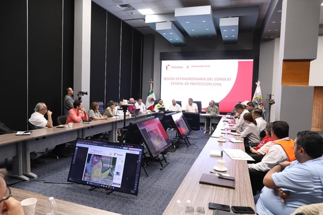 Ciudad Victoria, Tamaulipas, México, América.- El gobernador Américo Villarreal Anaya presidió este domingo la sesión extraordinaria del Consejo Estatal de Protección Civil, para dar puntual seguimiento y reforzar todas las medidas de previsión ante el desarrollo de la tormenta tropical Barry, que se mantiene en el Golfo de México.
