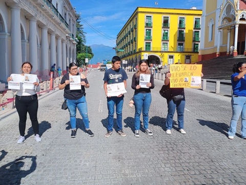 Con pancartas y fichas de búsqueda que repartieron entre la ciudadanía, los manifestantes hicieron un llamado a la Gobernadora Rocío Nahle y a las autoridades en general para que apoyen en la búsqueda.