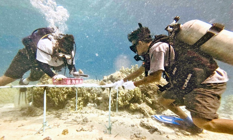 Estas pruebas evalúan cómo responden las diferentes especies de coral al aumento de la temperatura del océano. Posteriormente, los corales se transfieren a viveros de campo, donde se monitorea periódicamente su crecimiento y salud. También se han establecido dos viveros en las áreas marinas protegidas de Bikirin y Dren Meo. Estos viveros ayudarán a suministrar los corales más adecuados para futuras iniciativas de restauración frente al cambio climático.