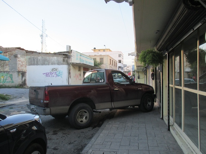 Ciudad Victoria, Tamaulipas, México, América.- Al fin que en Victoria, la Constitución, las Leyes y los Reglamentos son letra muerta, el chofer de esta camioneta la dejo atravesada sobre la banqueta en el 13 Hidalgo y Juárez en el Centro de la Ciudad, perjudicando el derecho de libre tránsito de los peatones, como otros miles que estacionan sus vehículos arriba de la acera en toda la ciudad con la complacencia del Ayuntamiento de Morena.