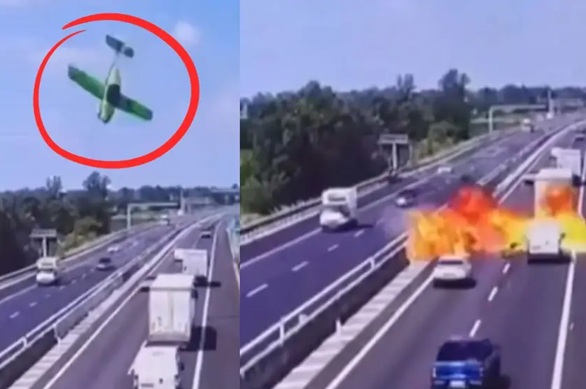 Un video que se volvió viral capta el momento en que la avioneta se estrelló contra la carretera en la provincia italiana de Brescia y estalló en una bola de fuego, obligando a los vehículos a realizar maniobras evasivas.