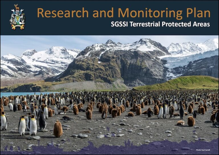 Tras la designación de las Áreas Terrestres Protegidas, GSGSSI publicó el Plan de Gestión del APT (2023-2029). Un compromiso clave de dicho documento fue desarrollar un Plan de Investigación y Monitoreo (PIR) en un plazo de 18 meses tras su adopción. Este Plan revisaría las actividades de monitoreo y recopilación de datos existentes en el Territorio y las compararía con los objetivos de gestión del APT.