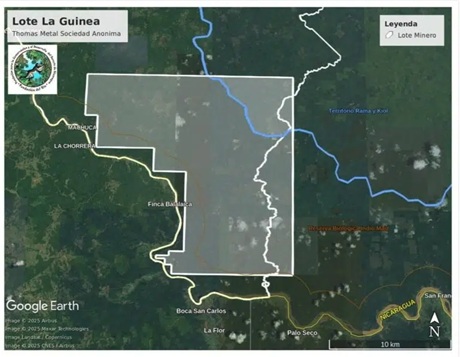 La concesión del lote denominado La Guinea abarca 21 882.30 héctareas de terreno y se ubica en los municipios de El Castillo y San Juan de Nicaragua, dentro de la Reserva Biológica Indio Maíz, el territorio indígena Rama y Kriol, y el Refugio de Vida Silvestre Río San Juan, en la zona fronteriza con Costa Rica.