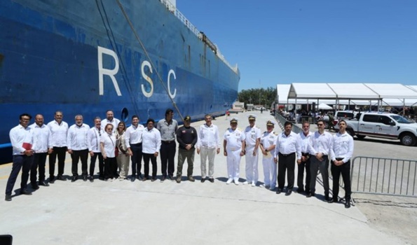 La ceremonia incluyó el banderazo de salida al embarque de los primeros vehículos que abordaron el buque Integrador, anclado en el nuevo muelle.