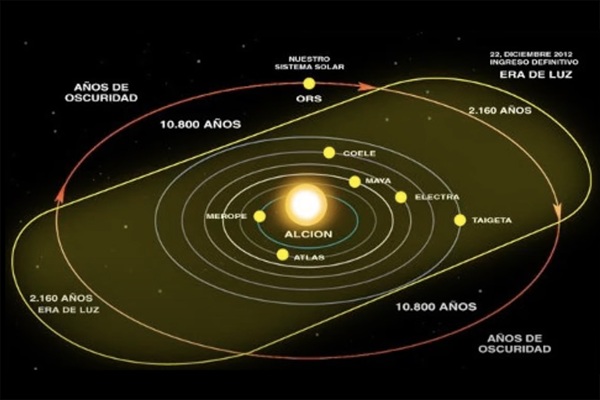 En principio tengo que decir que, en el año 2012, por cuestión natural entramos en la zona del Cinturón de fotones de Alcione, o sea nuestro Sol Ors, con sus 12 Planetas entro en esta zona, debiendo destacar que nuestro Sol cada 25 mil 868 años, da vuelta completa al Sol Alcione, que es la capital de nuestro Sistema Sideral de Alcione, al entrar en esta región espacial, los cuerpos de carbono 14 ya no sirven, porque la energía solar es altísima.