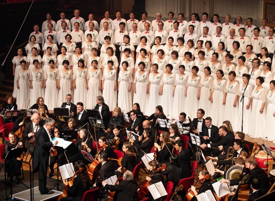 Sídney, Australia, Oceanía.- Imagen de artistas realizando una presentación durante un gran concierto sinfónico épico, titulado «Oda a la paz y al futuro», en el Ayuntamiento de Sídney, en Sídney, Australia. El concierto, junto con una exposición fotográfica, se celebraron aquí para conmemorar el 80º aniversario de la victoria de la Guerra Mundial Antifascista.
