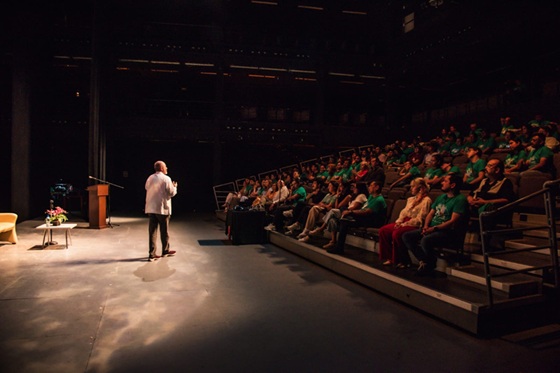 «Ustedes, a través del teatro, son portadores e inventores de historias, relatos y narraciones. Son privilegiados en la posibilidad de fomentar la palabra y les deseo mucho éxito, no solo el teatro, también en esa capacidad de gestionar la cultura, que se trata de gestionar lo humano», apuntó durante su charla.