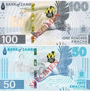 Nuevos billetes de K100 y K50 se pondrán en circulación el próximo mes en Zambia