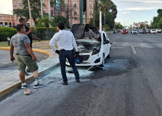 El reporte al número de emergencias 911 se originó después que un vehículo de la marca Chevrolet tipo Spark que circulaba en sentido de norte a sur por el Bulevar ulevar Tamaulipas se incendió al pasar el Bulevar Adolfo López Mateos.