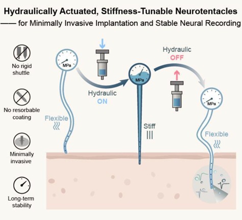 La sonda «Neurotentacle», desarrollada por investigadores del Instituto de Semiconductores de la Academia China de Ciencias (ACC), contiene un diminuto sistema hidráulico. Durante la implantación, la sonda «Neurotentacle», accionada hidráulicamente, se endurece como un globo inflado para penetrar con precisión el tejido cerebral. Una vez colocada, se ablanda para minimizar el daño y recupera su flexibilidad para adaptarse al microambiente cerebral, según el informe.