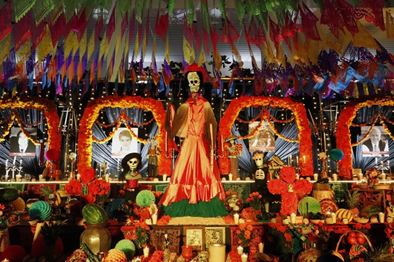 Exposición de tumbas y calaveritas de papel maché
