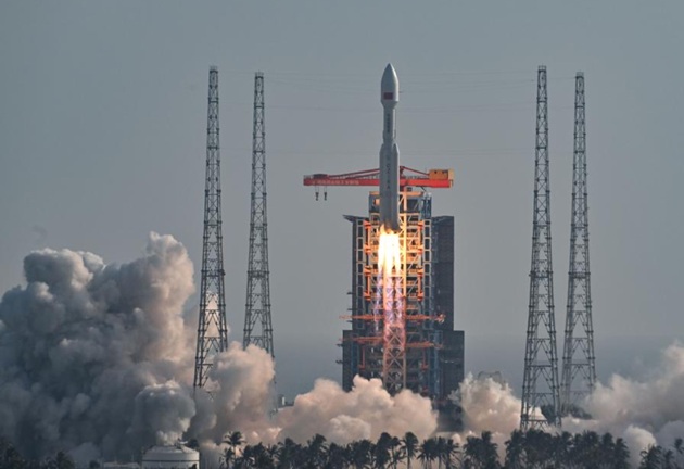 Beijing, China, Asia.- China lanzó el sábado un cohete portador Gran Marcha-8A desde la provincia insular sureña de Hainan, enviando un grupo de satélites de internet al espacio.