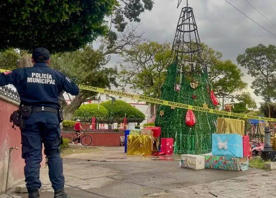 En Tlaxcala, el árbol navideño de Mazatecochco, se incendia en plena navidad