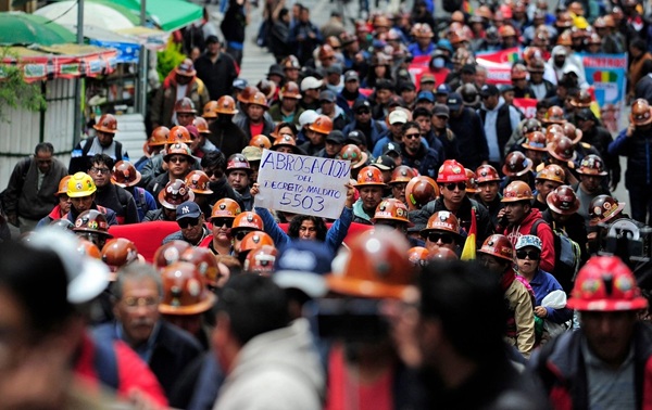 Desde hace ocho días mineros de empresas estatales llegaron a La Paz para rechazar las medidas del gobierno. “Nuestra protesta no es solo contra la eliminación del subsidio a los carburantes, sino contra este decreto maldito que busca hipotecar el país y a las futuras generaciones”, declaró el dirigente de la Central Obrera Boliviana (COB) Mario Argollo, que lidera la protesta a la que se han sumado otros sectores como maestros y sindicalistas de organizaciones indígenas.