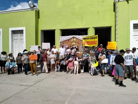 Mérida, Yucatán, México, América.- Ante la inconformidad por el incremento del impuesto predial en Telchac Puerto, poco más de 70 propietarios de casas veraniegas realizaron una protesta en las puertas del Palacio Municipal.