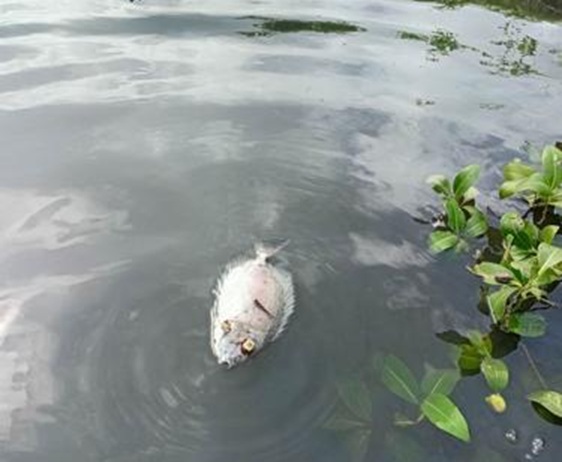 Añadió que, aunque a la población local se le ha restringido el acceso a la zona del puerto deportivo, los peces muertos siguen flotando en las aguas circundantes.