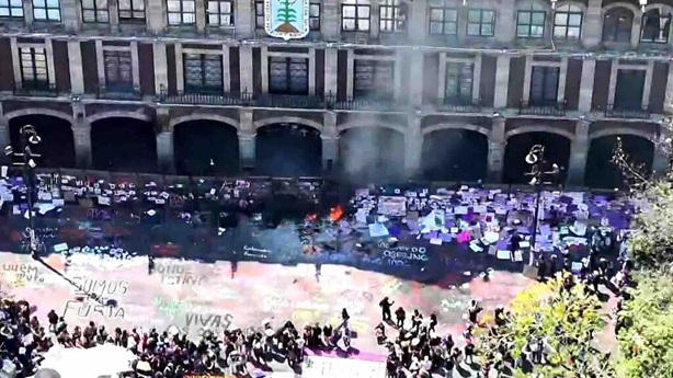Una de las bombas molotov quedó atrapada entre los muros del Palacio de Gobierno estatal, lo que provocó un incendio en esa parte del inmueble y generó gritos y alboroto entre las presentes.