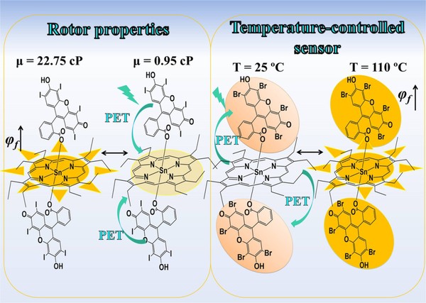La modificación de la porfirina con moléculas de colorante permitió crear tríadas sensibles a cambios en las propiedades ambientales. Estos sistemas químicos presentan una respuesta fluorescente a cambios en el pH y la viscosidad locales, lo cual es importante para estudiar la muerte celular cancerosa fotoinducida durante la terapia fotodinámica. Esto ofrece la posibilidad de monitorizar el proceso fotodinámico en tiempo real.