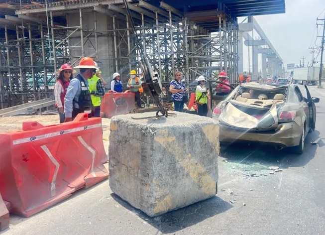 Conductor resulta herido tras caída de bloque en obras del Metro en Nuevo León